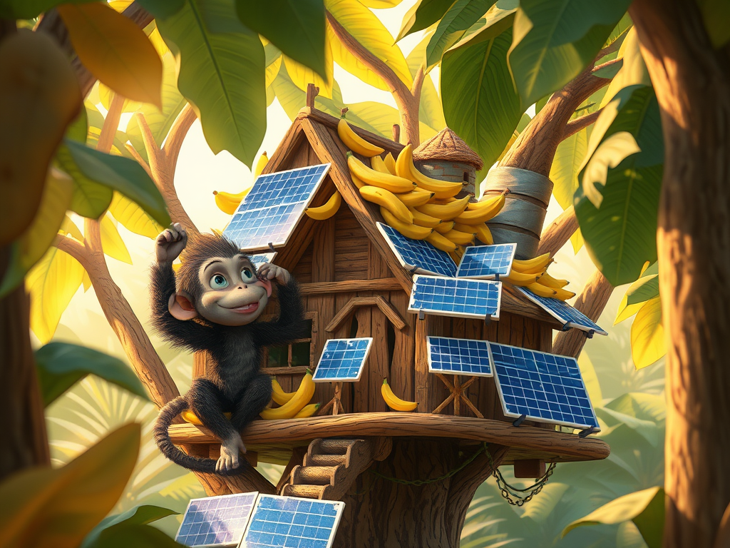Late one night in his research treehouse, Maurice was spotted doing something fascinating – he was building a miniature power grid using banana peels and tiny solar panels. What could have our primate analyst so excited about a utility company?